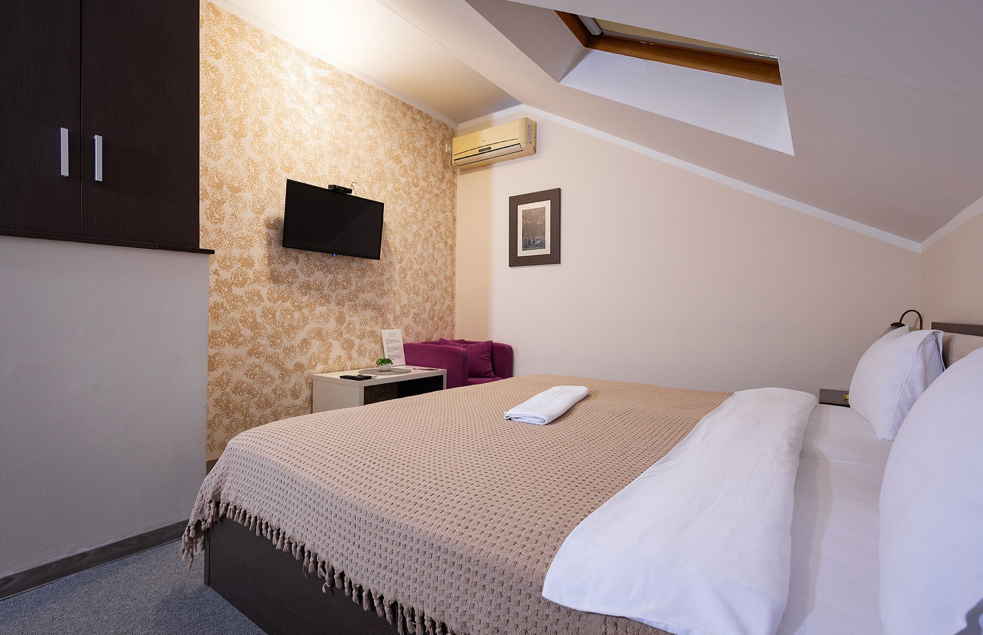 Kao naš najmanji i najviši član, Ekonomik studio je odličan izbor ukoliko imate potrebu za mirnim snom i jednostavnim sadržajem. Ova jedinica se najčešće rezerviše kao jednokrevetna soba.
